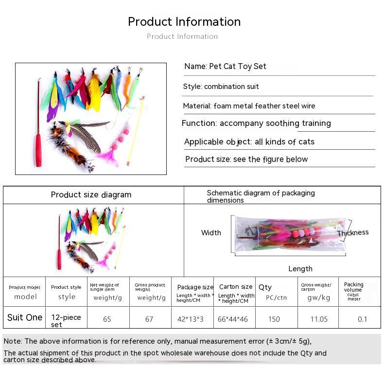 Pet Cat Toy Feather Retractable Bell Replacement Fishing Head Fishing Rod 12-piece Set